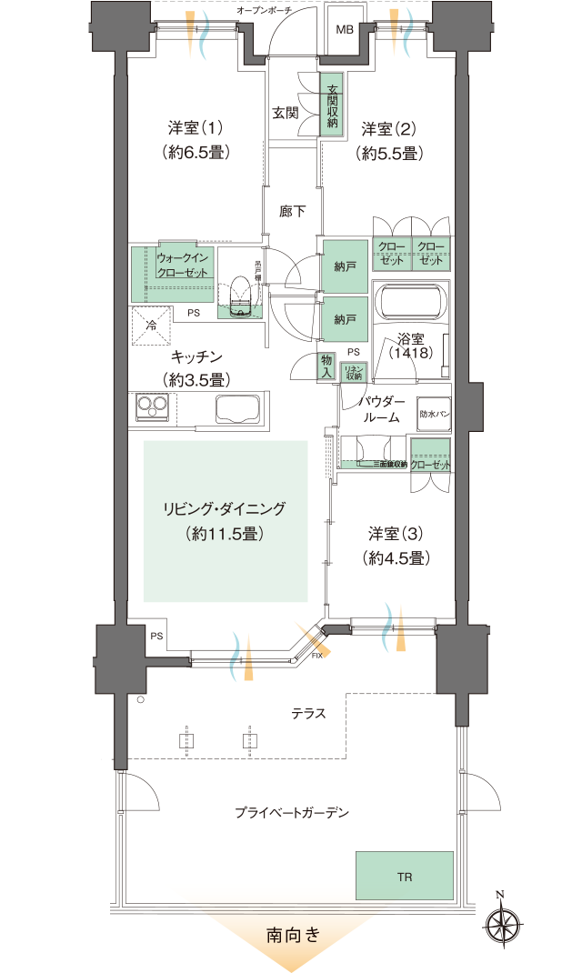 ●プライベートガーデン面積/16.44㎡(約4.97坪)