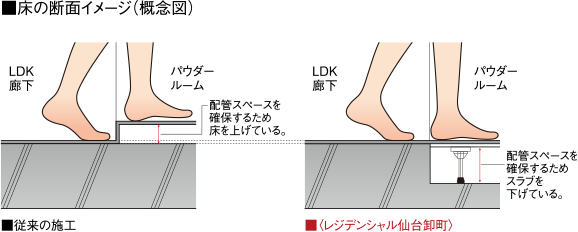 住戸内(玄関・物入・クローゼット等を除く)は段差のないフラットフロア(段差3mm以内)を採用し、つまづいたり、転んだりしないよう安全に配慮しました。