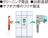 [概念図] 発送したい荷物をロッカーに入れておくだけで、契約宅配会社が引き取り、全国に発送します。